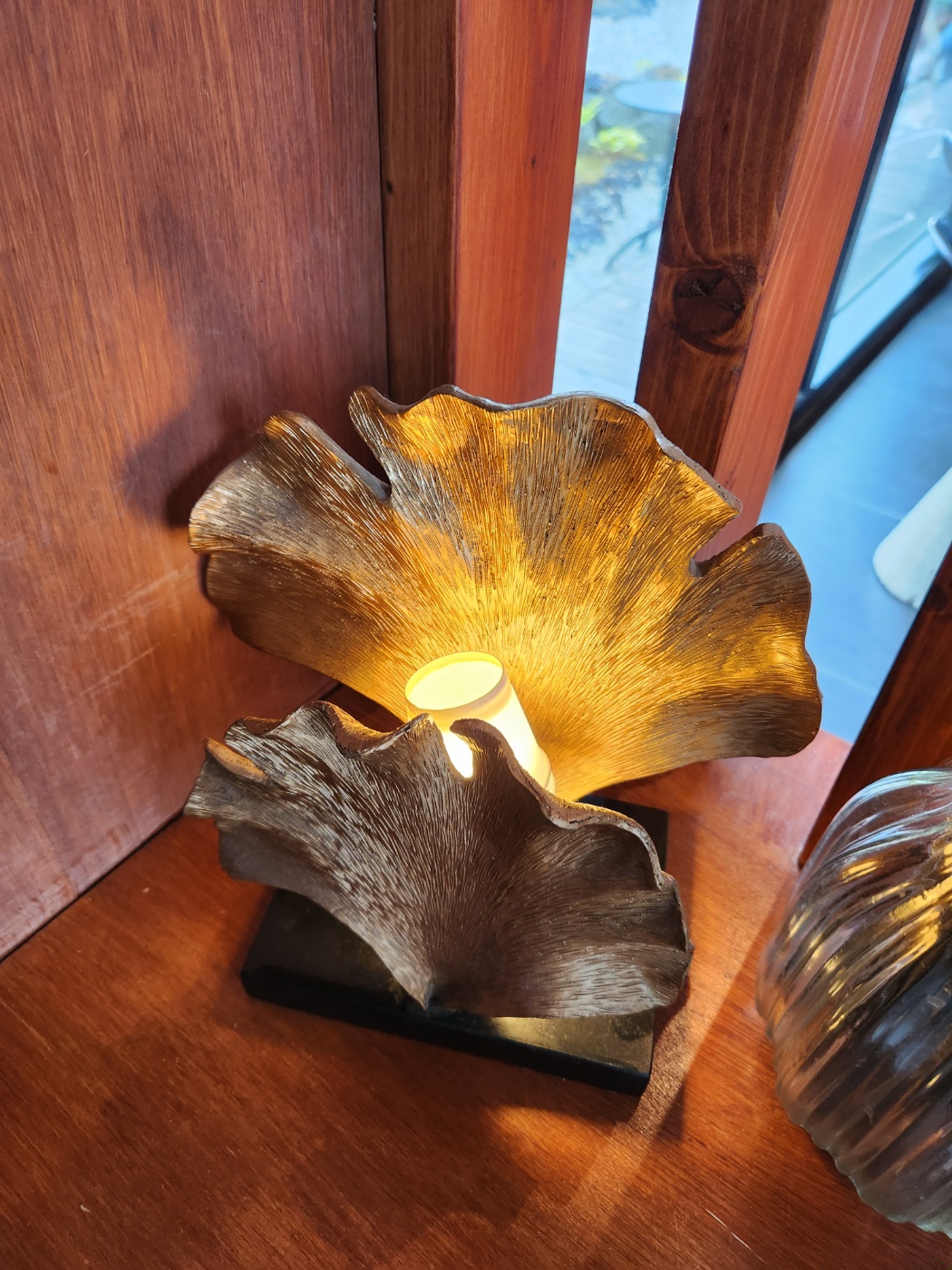 2층 천장 조명과 자리 곳곳에 배치된 작은 조명