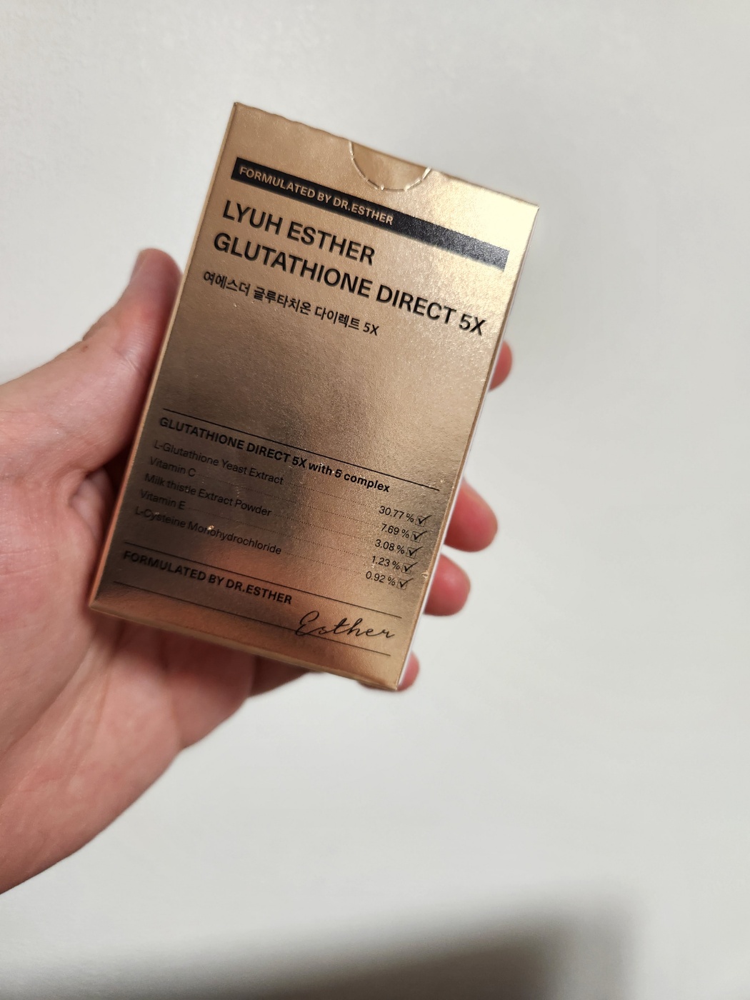 위 성분표를 보면 글루타치온과 글루타티온 합성을 돕는 비타민C와 비타민E, L-시스테인 성분이 같이 들어 있어 체내 흡수 및 합성률이 높아질 것으로 보입니다. 기존에 디렉트 3X보다 발전된 형태의 제품이네요.