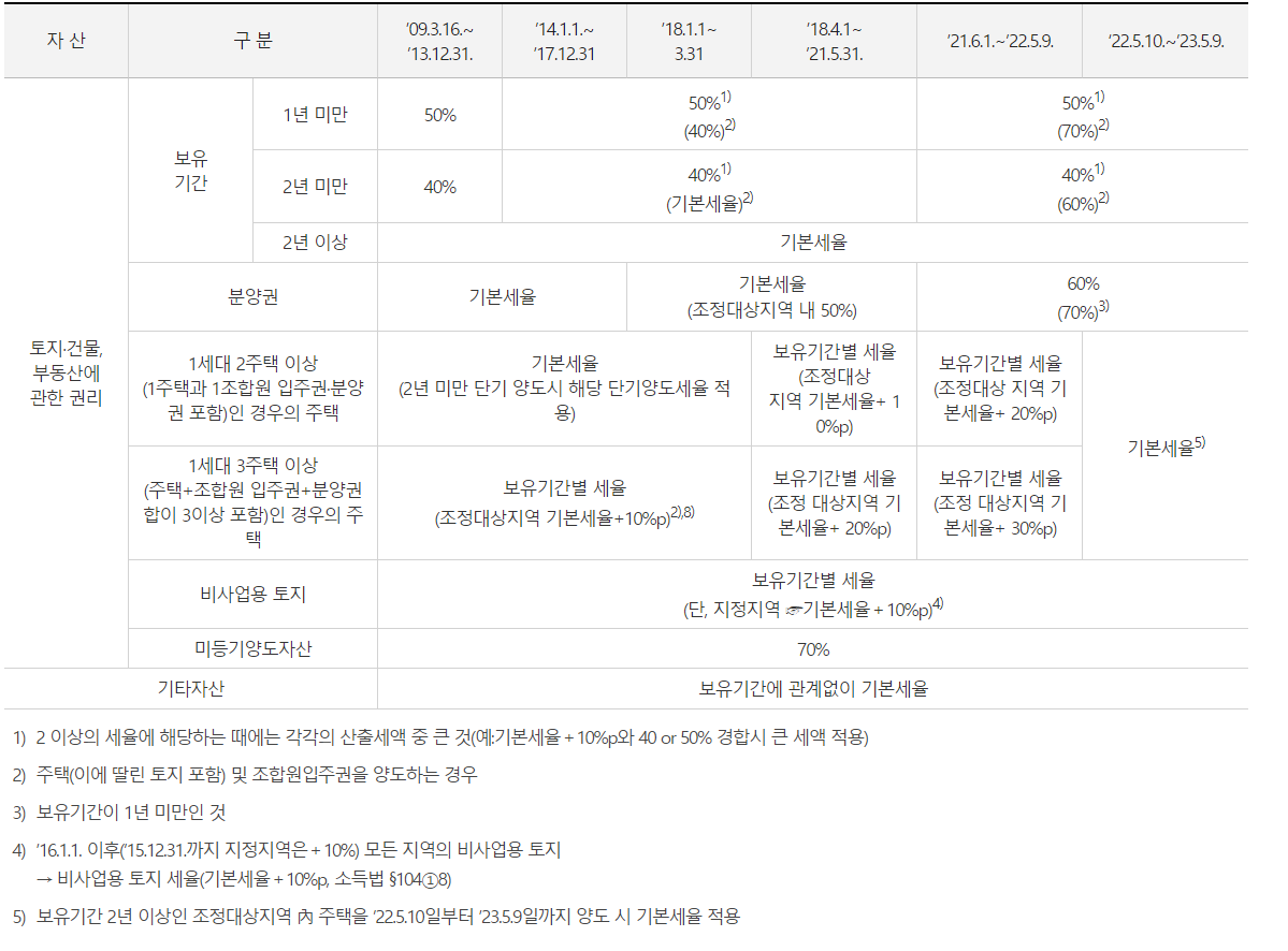 | 4년~5년 | 양도차익x16% | 4년~5년 | 양도차익x16% |
