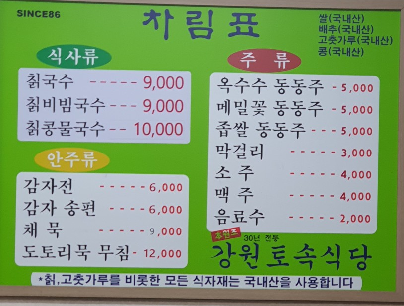 이곳의 메인 메뉴는 당연 칡국수입니다.