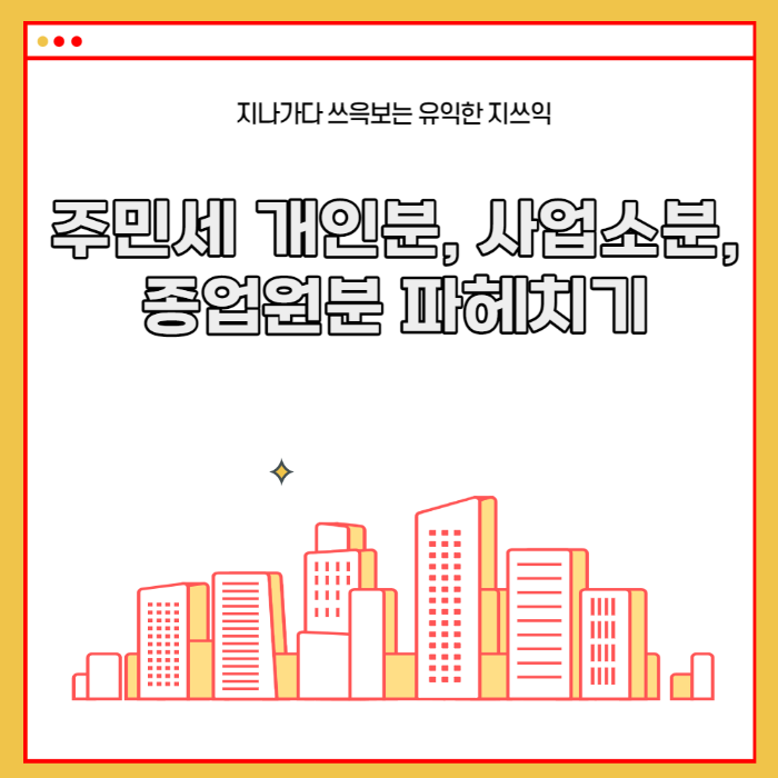 매년 8월 정도 되면 집으로 고지서 한 장을 받게 되는데요. 거기에는 주민세 개인분이라는 명목으로 일정금액의 세금을 납부하게 됩니다. 개인사업자나 법인사업자의 경우에는 매달 주민세 종업원분, 8월에는 주민세 사업소분에 대한 고지서를 받게 되실 텐데요. 이 세금이 무엇인지 알고 내야 덜 억울하겠죠? 지금부터 주민세라는 것이 어떤 세금인지 알아보도록 하겠습니다.