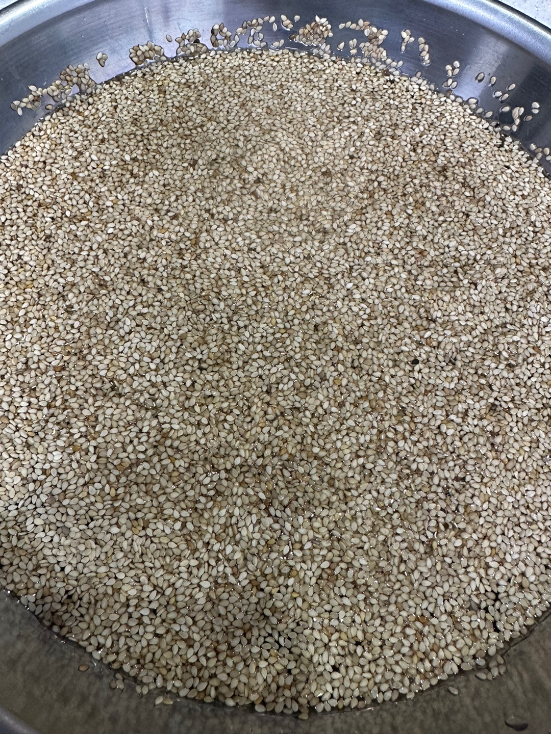 4) 깨를 이동시킨 후 남은 깨는 싱크대물을 버려주면서 침전된 불순물과 분리시킵니다.
