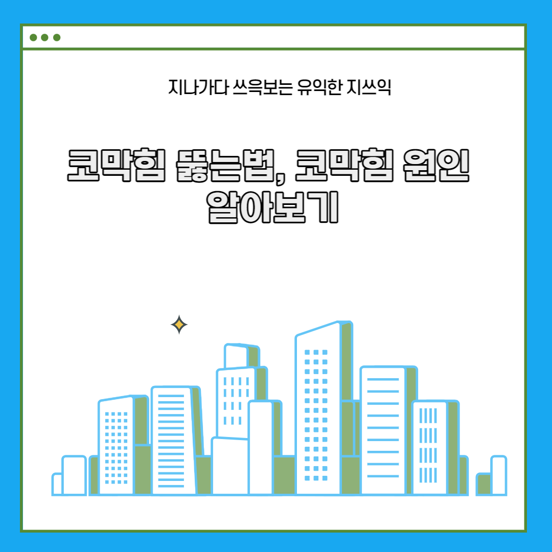 환절기를 지나다 보면 갑자기 콧물이 나거나 코가 막히거나 하는 경험을 합니다. 코가 막히면 코로 숨쉬기 힘들어지고 입으로 숨 쉬어야 하기 때문에 코막힘으로 인해 여간 불편한 게 아닙니다. 이런 코막힘의 원인과 코막힘 뚫는 법에 대하여 알아보도록 하겠습니다.