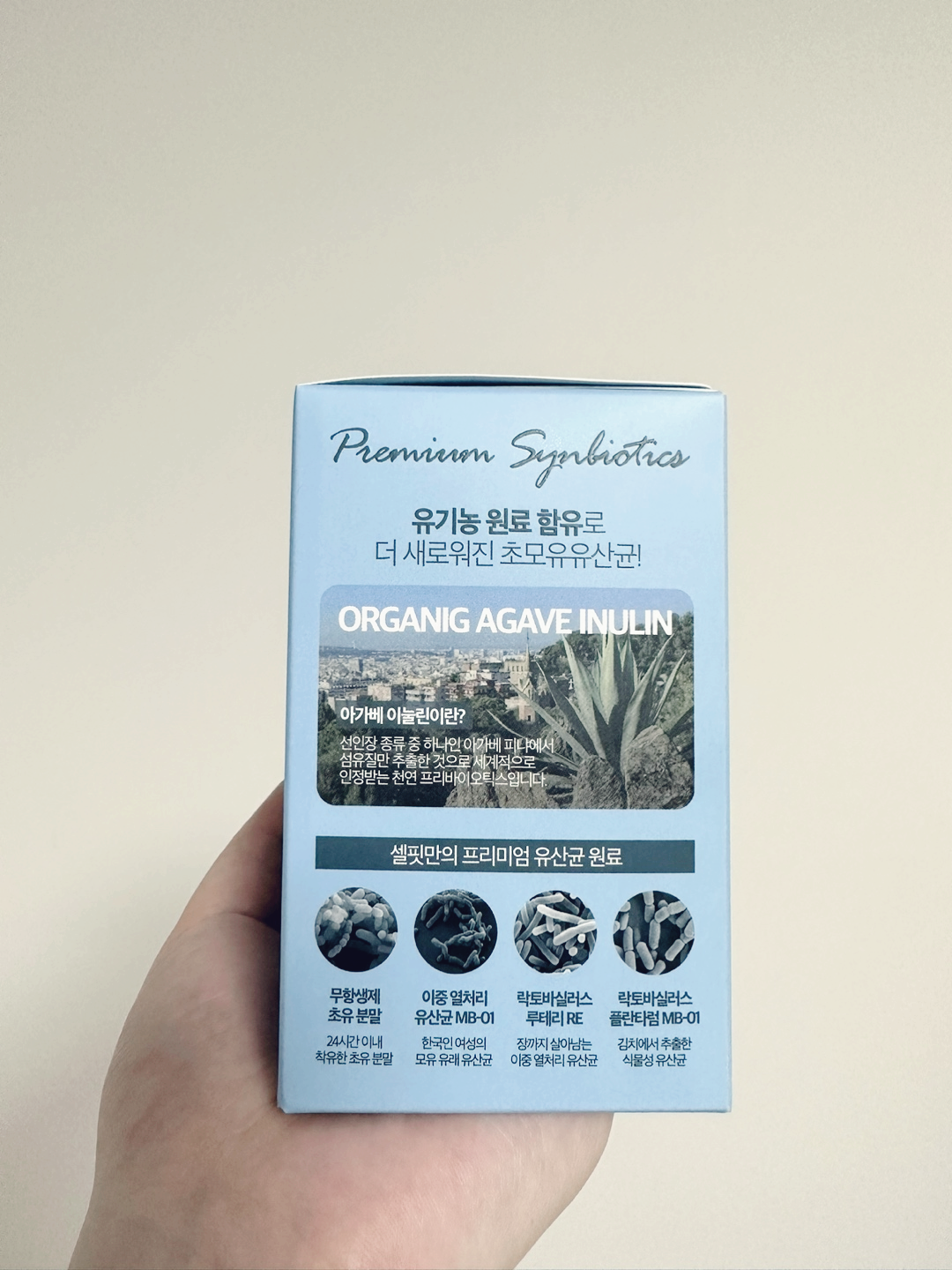 셀핏 초모유유산균에는 아가베 이눌린이라는 성분이 들어있는데요, 이는 천연 프로바이틱스라고 합니다. 화학물질이 없는 프로바이오틱스로 긴 장에서 끝까지 살아남아 유익균 활성화에 도움이 된다고 합니다.